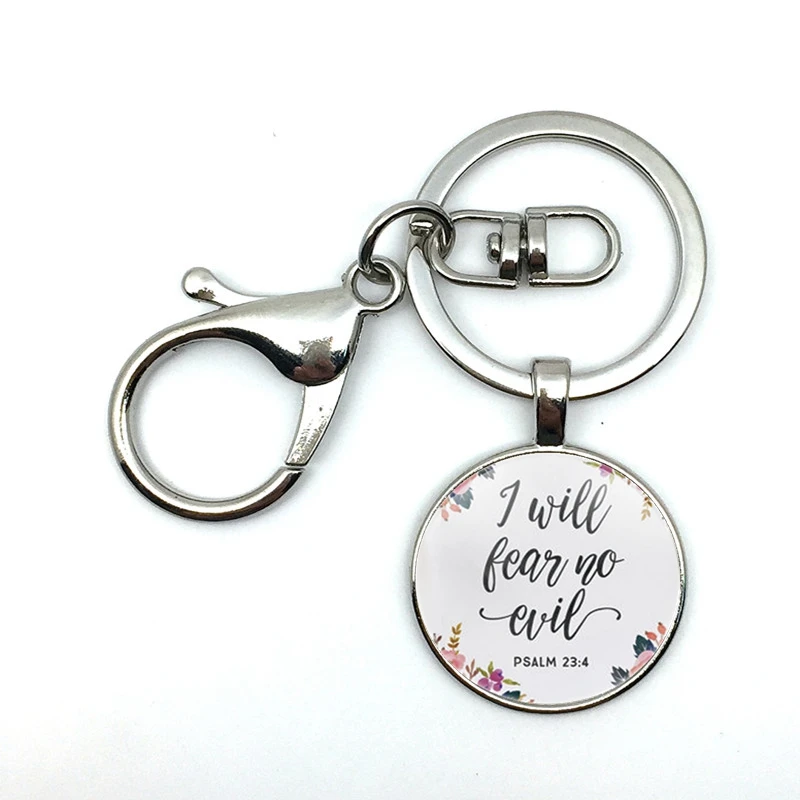 2018 Fashion Hot Money I Will Not Fear The Evil Psalm 23 4 Bible Scripture Round Glass Pendant Keychain Key Chains Aliexpress